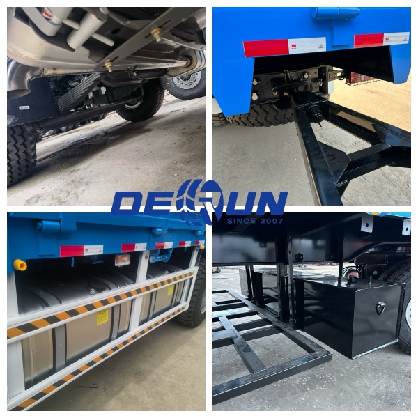 అధిక-శక్తి మిశ్రమ మిశ్రమం స్టీల్తో తయారు చేసిన డ్రాబార్ ట్రెయిలర్తో కంచె కార్గో ట్రక్ యొక్క చట్రం, ఒకే స్టాంపింగ్ ప్రక్రియలో రేఖాంశ కిరణాలు ఏర్పడ్డాయి, మరియు లోడ్-బేరింగ్ సామర్థ్యం మరియు టోర్షనల్ దృ g త్వం సమతుల్యం చేయడానికి క్లిష్టమైన ఒత్తిడి ప్రాంతాలలో లోపలి పలకలతో బలోపేతం చేయబడతాయి; ట్రక్ మరియు ట్రైలర్ రెండూ మల్టీ-లీఫ్ స్ప్రింగ్స్ మరియు గొట్టపు షాక్ అబ్జార్బర్స్ కలయికను ఉపయోగిస్తాయి, ముందు భాగంలో విలోమ స్టెబిలైజర్ బార్ మరియు వెనుక భాగంలో ఎయిర్బ్యాగ్లను ఎత్తడం, అన్లోడ్ చేసినప్పుడు ఇంధన వినియోగాన్ని తగ్గించడం మరియు పూర్తిగా లోడ్ అయినప్పుడు స్థిరత్వాన్ని పెంచుతుంది. ట్రక్ యొక్క ఎలక్ట్రికల్ సిస్టమ్లో డస్ట్ ప్రూఫ్ మరియు శాండ్-ప్రూఫ్ వైరింగ్ జీనులు, రీన్ఫోర్స్డ్ ఎయిర్ ఫిల్టర్లు మరియు ఎడారి ఫిల్టర్లు ఆఫ్రికన్ ఎడారి యొక్క మురికి పరిస్థితులకు అనుగుణంగా ఉంటాయి. అన్ని లైటింగ్ రాత్రి అధిక దృశ్యమానత కోసం LED వనరులను ఉపయోగిస్తుంది. క్యాబ్లో నాలుగు పాయింట్ల సస్పెన్షన్ సిస్టమ్, ఎయిర్-క్యూషనల్ సీట్లు, ఎలక్ట్రిక్ విండోస్, మల్టీఫంక్షనల్ స్టీరింగ్ వీల్ మరియు సుదూర సౌకర్యం కోసం విస్తృత మంచం ఉన్నాయి. ధాన్యం, ఎరువులు మరియు నిర్మాణ సామగ్రి వంటి బల్క్ వస్తువులను సులభంగా లోడ్ చేయడం మరియు అన్లోడ్ చేయడం కోసం ట్రైలర్ తేలికపాటి కార్గో కంపార్ట్మెంట్ నిర్మాణాన్ని తొలగించగల సైడ్ ప్యానెల్స్తో అవలంబిస్తుంది.