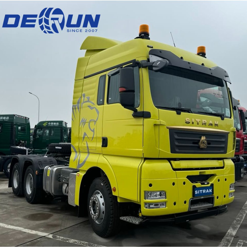 సినోట్రక్ సిట్రాక్ 6x4 10 వీల్ హెడ్ ట్రాక్టర్ ట్రక్ ప్రైమ్ మూవర్ అనేది చైనా నేషనల్ హెవీ డ్యూటీ ట్రక్ గ్రూప్ (సిఎన్హెచ్టిసి) ప్రారంభించిన హై-ఎండ్ హెవీ డ్యూటీ ట్రక్, ఇది అనేక అధునాతన సాంకేతిక పరిజ్ఞానాన్ని మిళితం చేస్తుంది మరియు సుదూర మరియు హై-స్పీడ్ లాజిస్టిక్స్ రవాణా కోసం రూపొందించబడింది. దీని ప్రదర్శన స్ట్రీమ్లైన్ డిజైన్ను అవలంబిస్తుంది, ఇది గాలి నిరోధకతను సమర్థవంతంగా తగ్గిస్తుంది మరియు ఇంధన ఆర్థిక వ్యవస్థను మెరుగుపరుస్తుంది. క్యాబ్ విశాలమైన మరియు సౌకర్యవంతమైనది, విలాసవంతమైన ఇంటీరియర్ మరియు డ్రైవర్ మరియు ప్రయాణీకులకు సౌకర్యవంతమైన డ్రైవింగ్ వాతావరణాన్ని అందించడానికి అనేక వినియోగదారు-స్నేహపూర్వక నమూనాలు ఉన్నాయి.